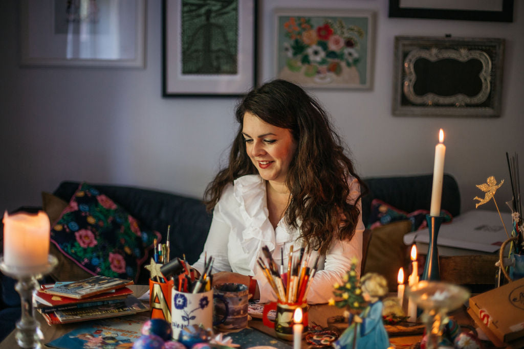 I started by painting a small collection of hand painted baubles inspired by folky bohemian pattern. The response was unbelievable so I took the leap of faith and started to develop a Christmas collection of hand painted decorations. The rest, as they say is history...