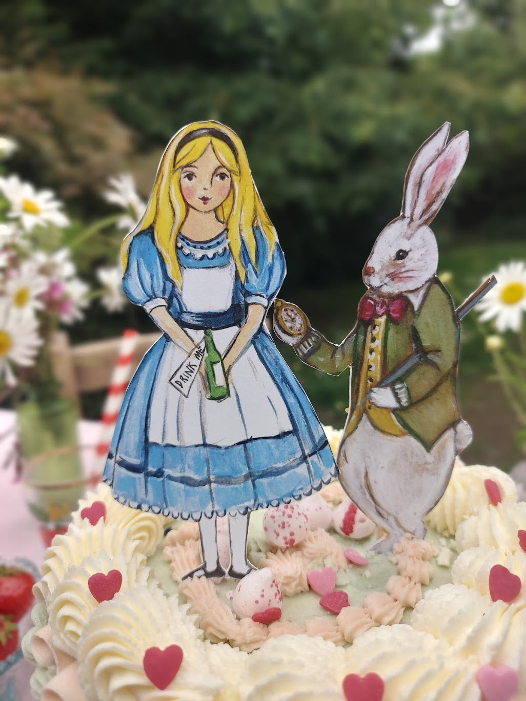 Bring the magic of Wonderland to your celebration with this special Alice and the White Rabbit cake topper. Featuring a delightful illustration by Amy , Its whimsical, fairytale charm and enchanting nostalgia makes for the most wonderful and unique centrepiece.