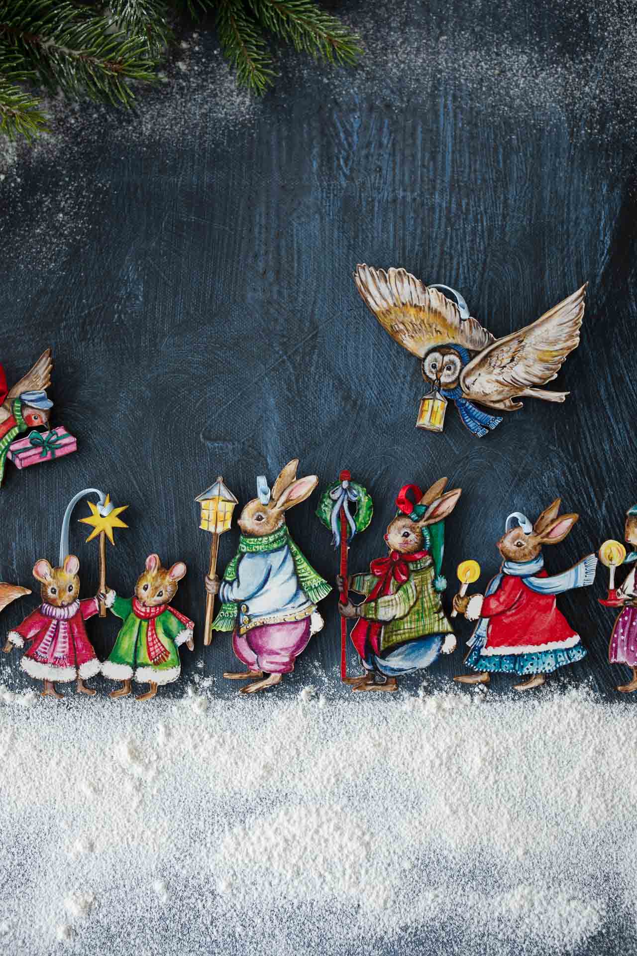 This collection includes a selection of hanging decorations, cake toppers and hand painted baubles, all uniquely illustrated by Amy.