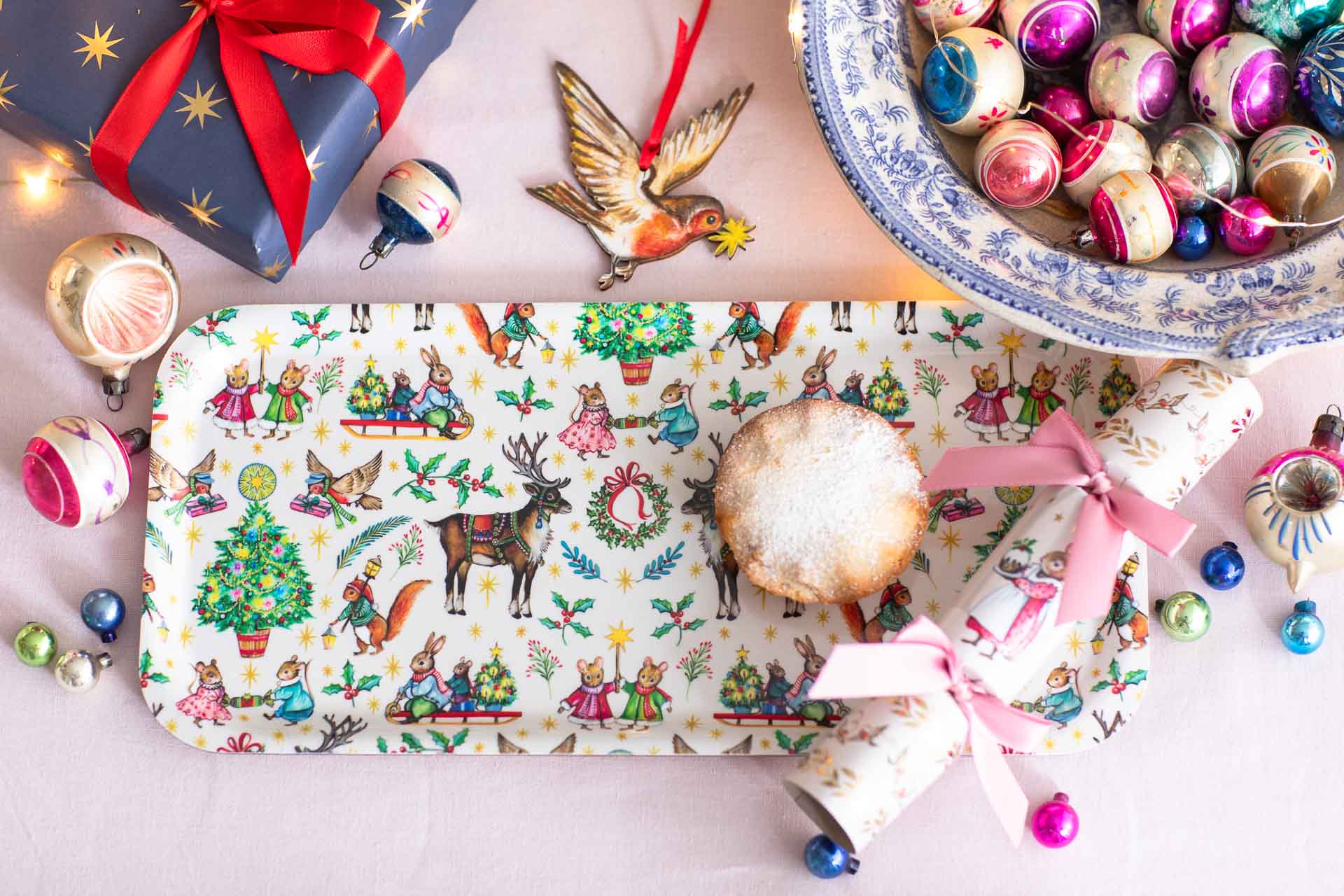 The Christmas Tales Treat Tray, illustrated by Amy and made in the UK, brings a playful touch to your snack time. This charming tray is perfect for serving treats with a sprinkle of whimsy, magic and fun.