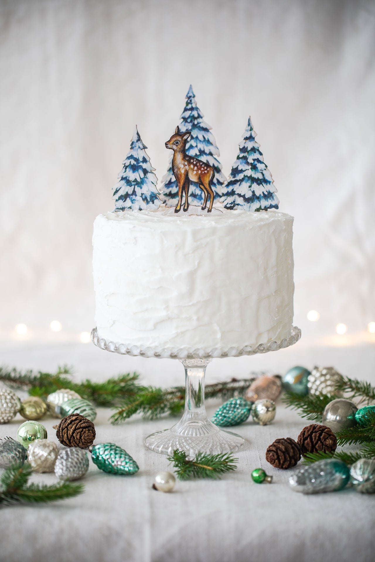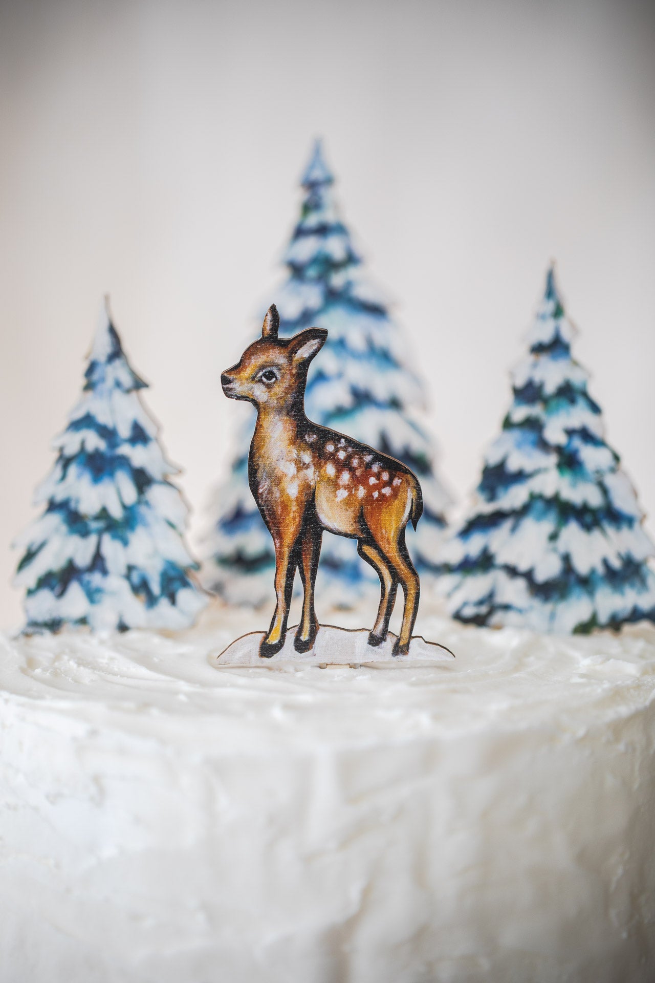 A magical and exclusive cake topper illustrated by Amy Swann printed from an original painting. Please note – snowy trees are sold separately.