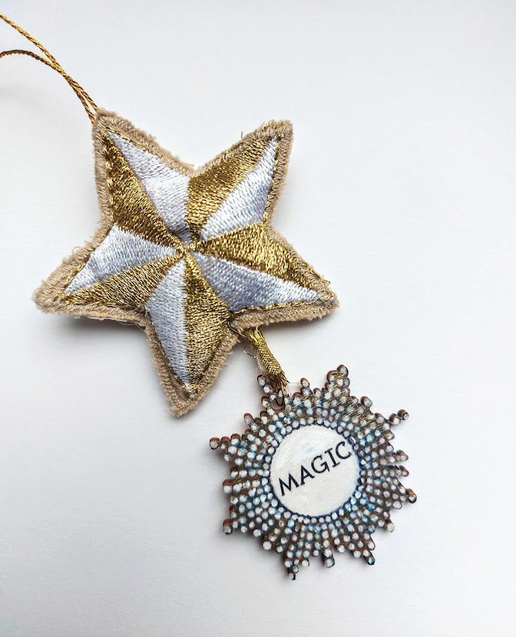 Magic Star- Hanging Wooden and Fabric Decoration