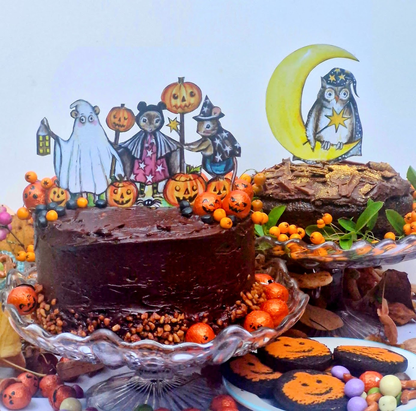 Celebrate Halloween with this playful wooden cake topper featuring mischievous magical Halloween mice. Crafted sustainably in Wales, it’s a delightful addition to your spooky party.