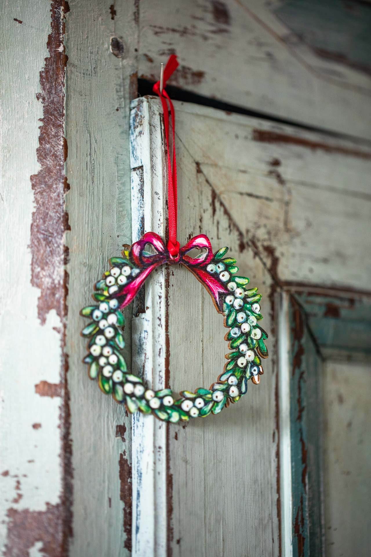 This beautiful hanging decoration is inspired by the classic Christmas wreath.