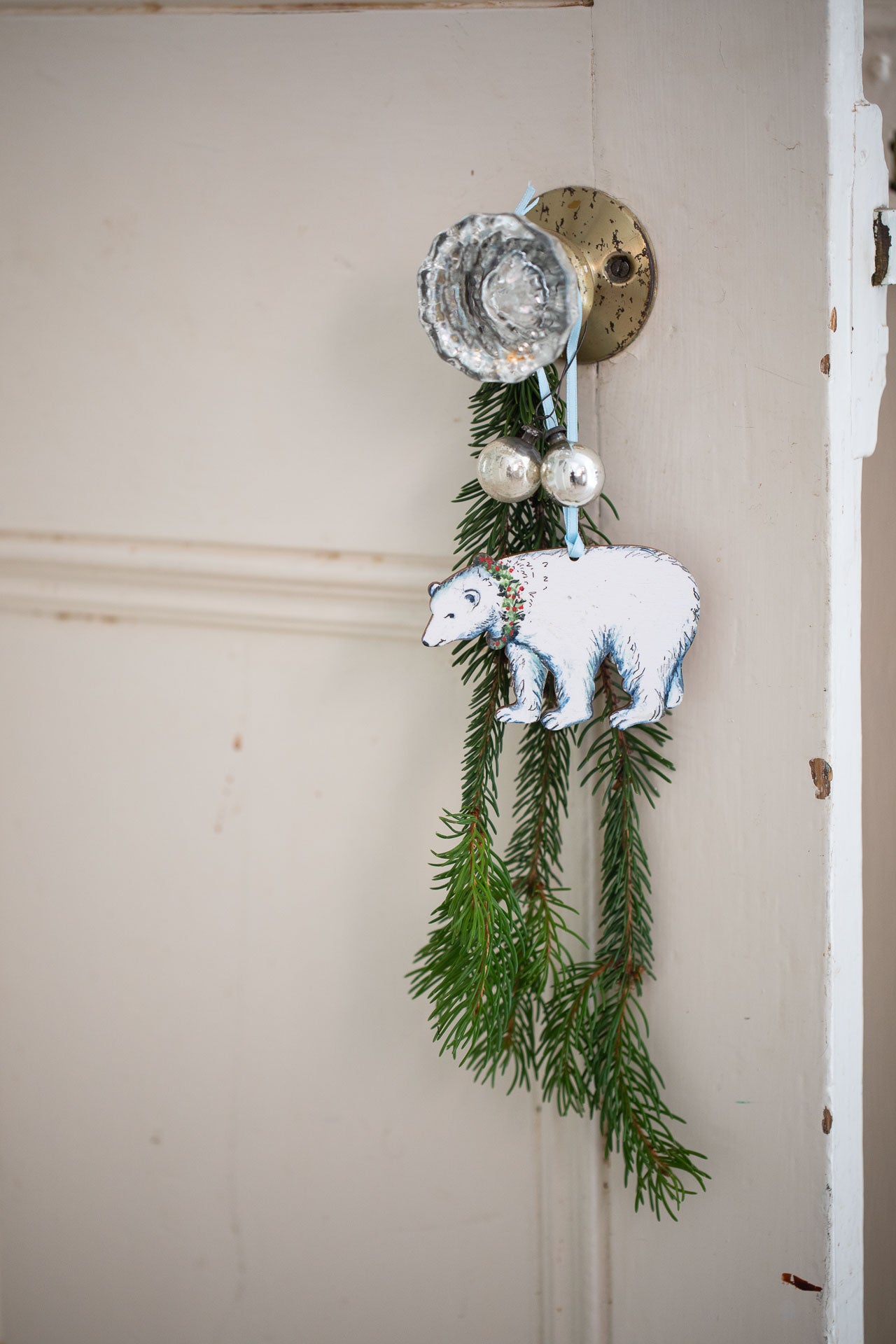 This classic polar bear hanging decoration is inspired by Amy's childhood memories of Christmas stories.