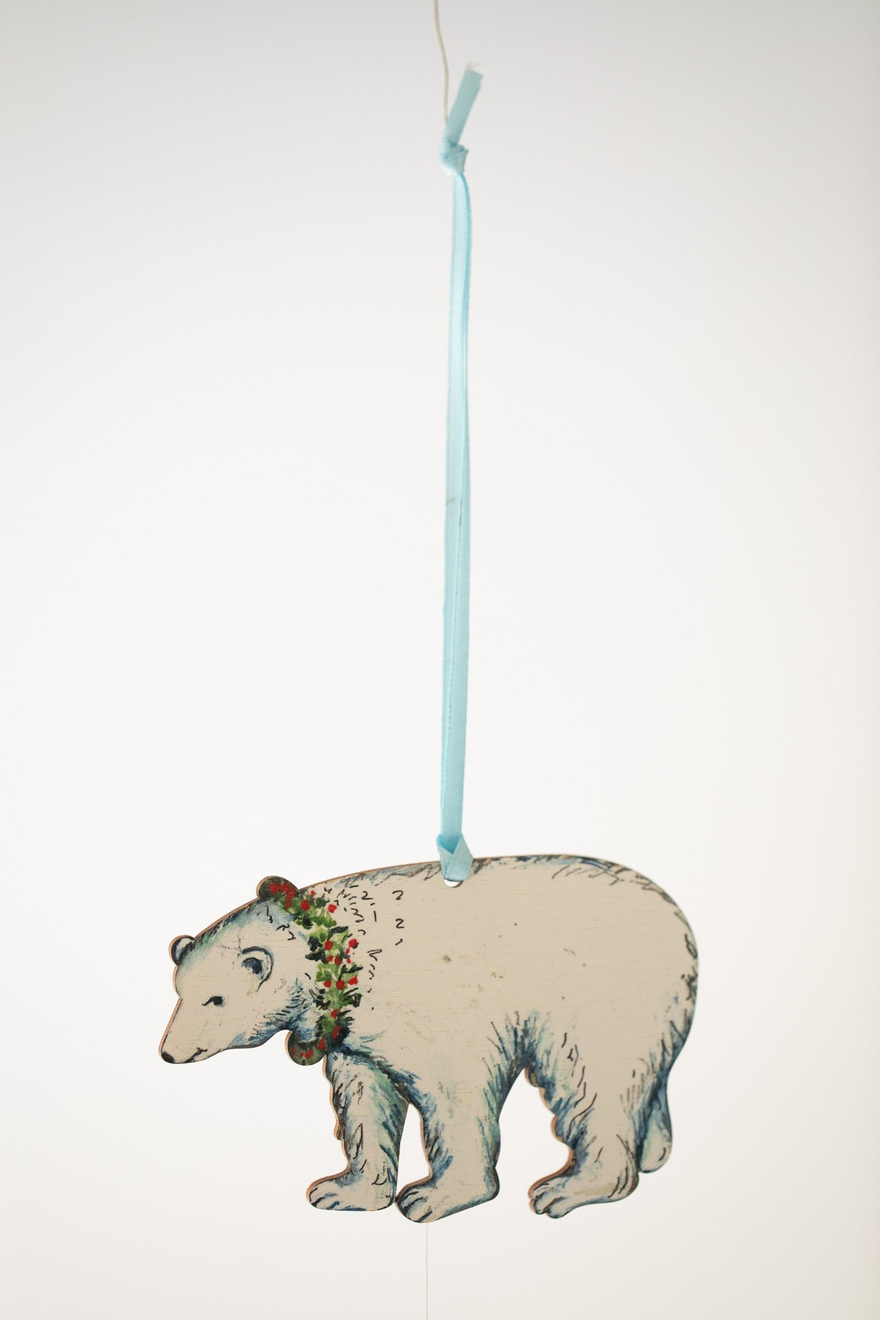 Balthazar Polar Bear ~ Hanging Wooden Decoration