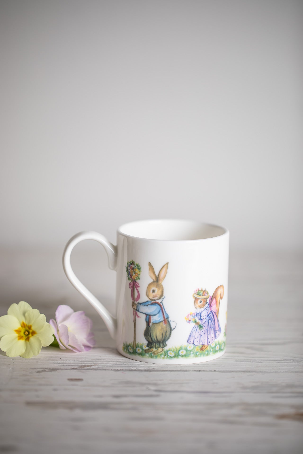 Designed exclusively by Amy Swann~ her whimsical animal character parade are placed together around the outside of the mug with a little forget me not sprig in on the inside. It makes a beautiful addition to your Spring celebrations.