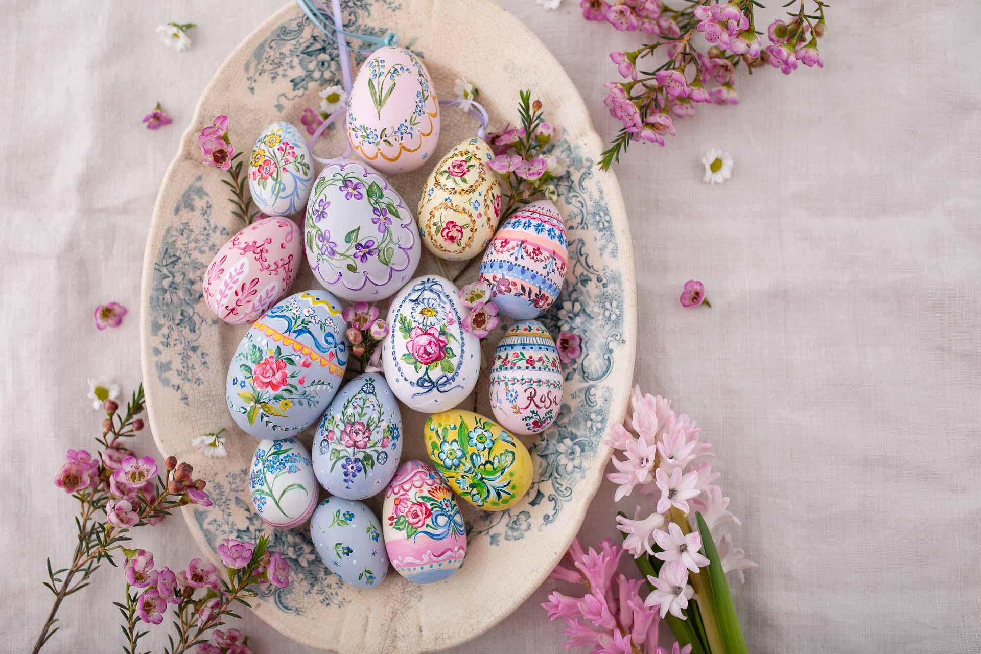 A beautiful limited edition ceramic egg exclusively designed and hand painted by Amy Swann. Finished with a co ordinating ribbon.